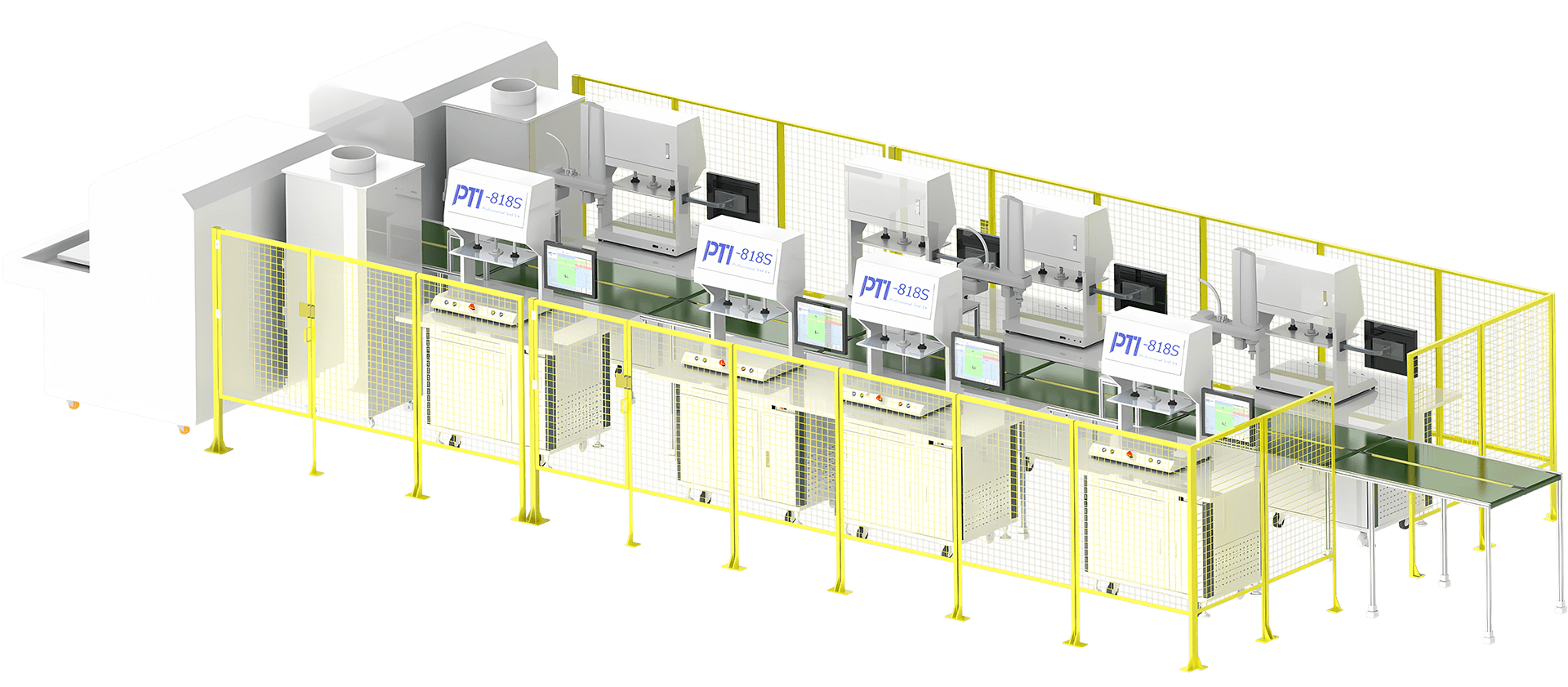 采用轨道式结构,通过接驳台直接与产线对接全面覆盖光学、ICT、FCT、烧录等